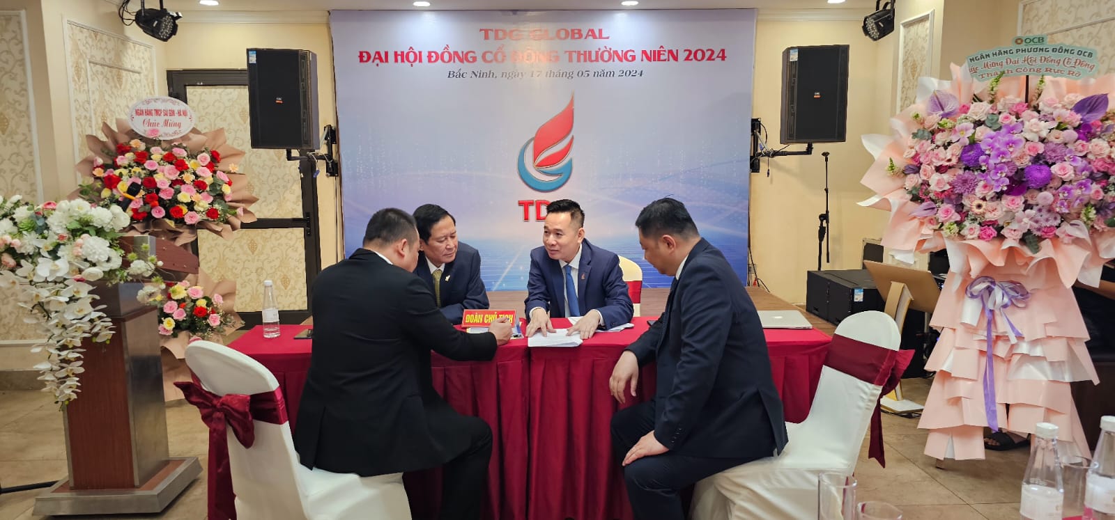 Ngày 17 tháng 5 năm 2024, tại TP Bắc Ninh, tỉnh Bắc Ninh, Công ty CP Đầu tư TDG GLOBAL đã tổ chức thành công Đại hội cổ đông năm 2024, nhằm thông qua kế hoạch trả cổ tức, kế họach tăng vốn, và bổ sung thành viên hội đồng quản trị (HĐQT).
